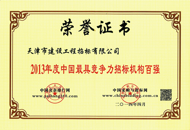 2013年度中國最具競爭力招標機構(gòu)百強
