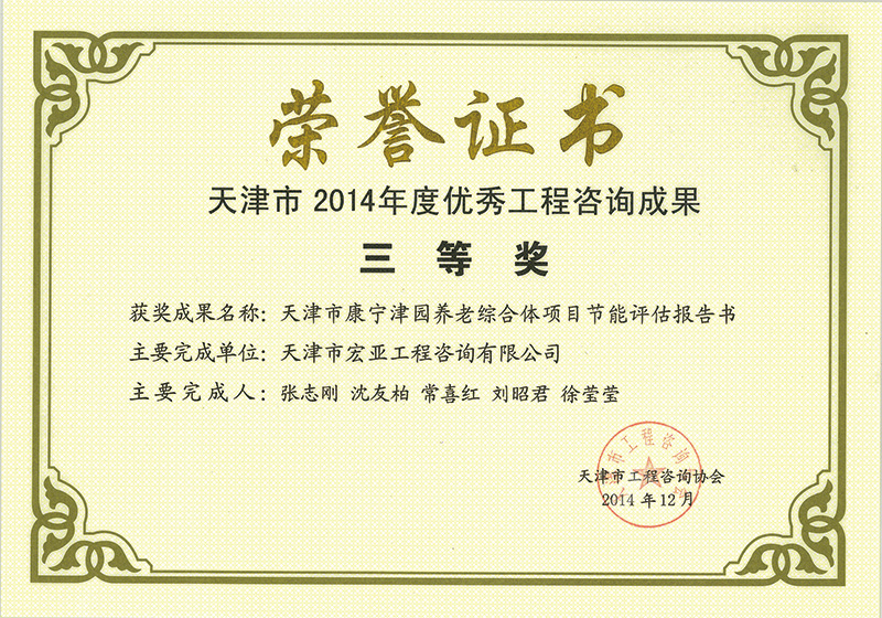 優(yōu)秀咨詢成果三等獎(jiǎng)(2014)